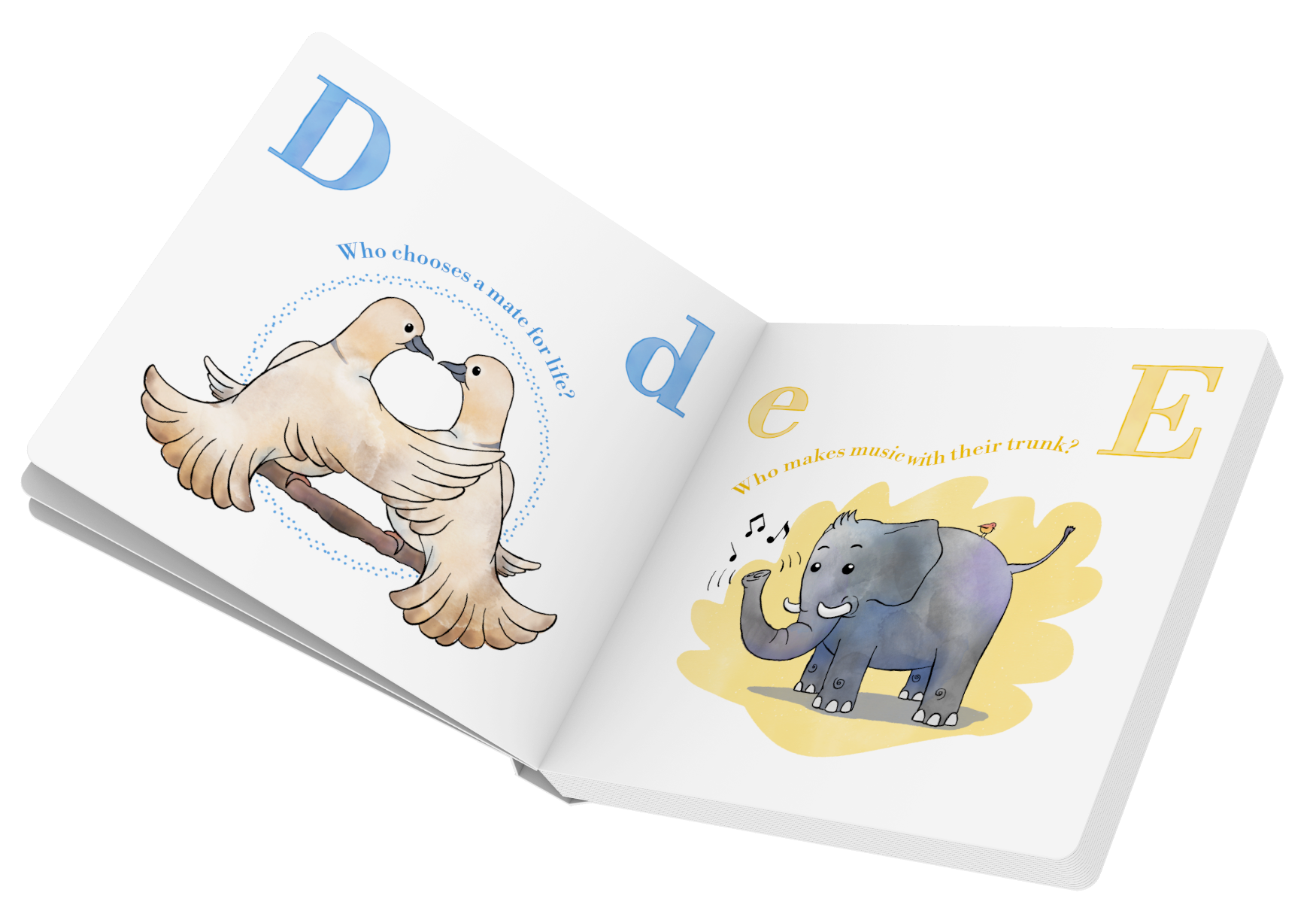 Auf jeder Seite entdeckt ihr ein Tier mit seinem Anfangsbuchstaben und einer spannenden Frage.